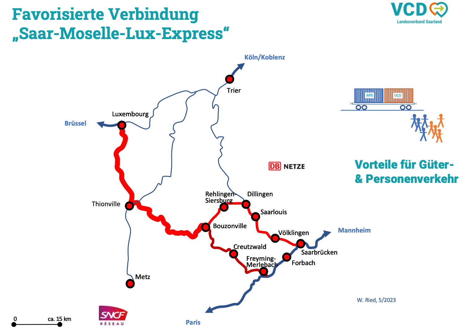 Der VCD sieht den höchsten verkehrsökologischen und ökonomischen Mehrwert im Ausbau des Schienenverkehrs über die Niedtalbahn mit Neubau dieser Moselquerung bei Yutz nahe Thionville. Sie bietet zugleich Chancen für die Anbindung weiterer Orte im Grenzraum des Départements Moselle.