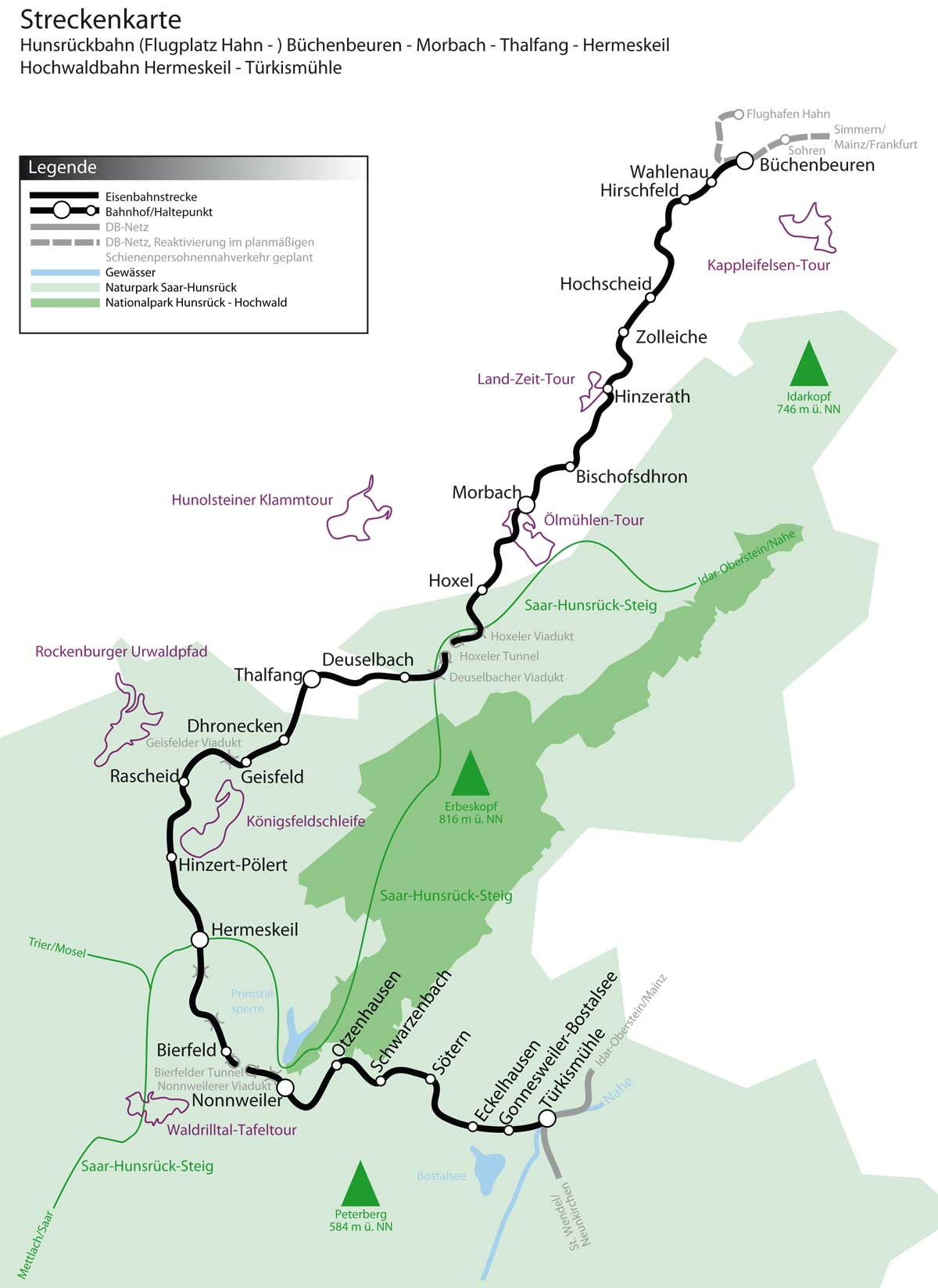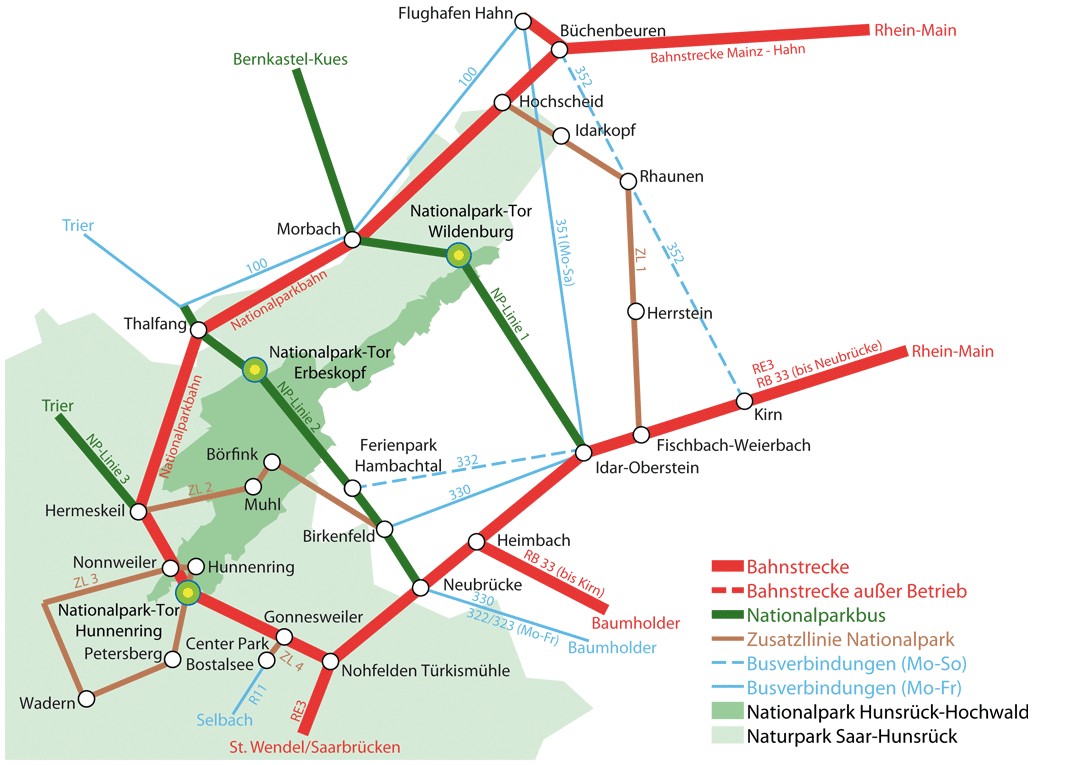 Die vorhandenen Schienenstränge der Hochwaldbahn, sowie der Hunsrückquerbahn bieten eine nachhaltige Alternative zur PKW Anreise.